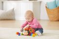 Stisknutím malé berušky vyskočí všechny vložené tvary ven. Beruška aktivně vybízí děti ke hře i k poznávání tvarů, barev, obrázků a čísel. Berušku i s jejím děťátkem lze také táhnout na provázku, přičemž se beruška roztomile kolébá. K posílení motoriky dítěte slouží i další pohyblivé prvky jako je otáčející se malá beruška, pohyblivá housenka nebo křídla motýlka.