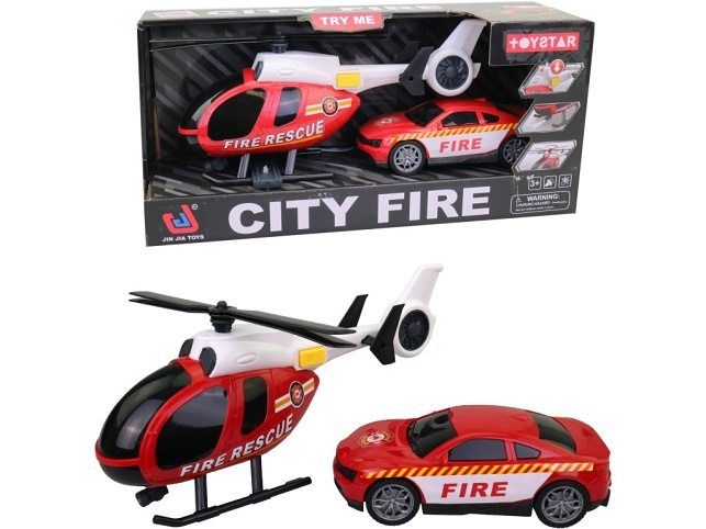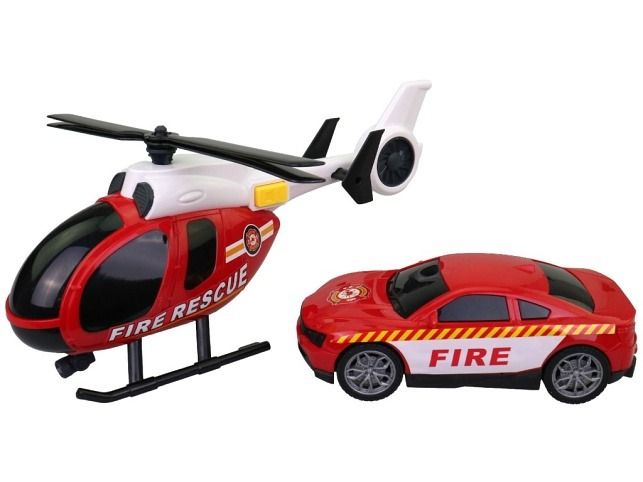 Vtrtulník s hasičským vozem, 20,8 x 7,5 x 12,5 cm s funkční vrtulí. Vytvořte si doma svůj vlastní heliport s vlastním vrtulníkem a užijte si všech jeho předností. Připravte se k zásahu. Vrtulník obsahuje funkční vrtuli a určitě se stane středem pozornosti při jakékoliv akci. Rozměry boxu 36,5 x 11 x 17,5 cm. Vrtulník je napájen bateriemi 3 x AG13 (jsou součástí balení). Materiál: plast. Vhodné pro děti od 3 let.