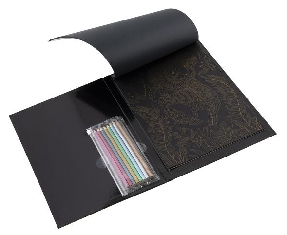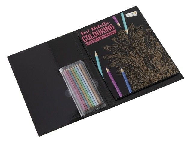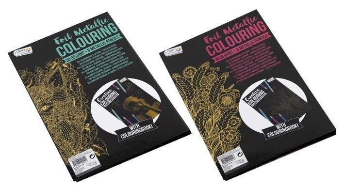 Vybarvovací kniha A4 s metalickými pastelkami – vabarvovací kniha obsahuje 30 ks obrázků a 8 metalických pastelek. Dva druhy.