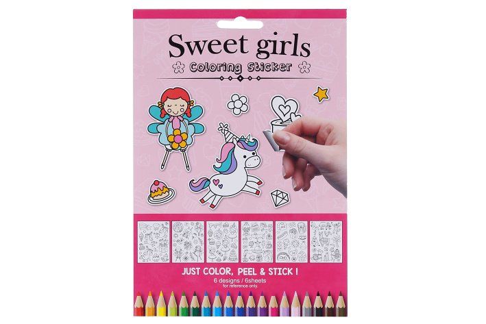 Vybarvovací nálepky 6 listů - Pro holky