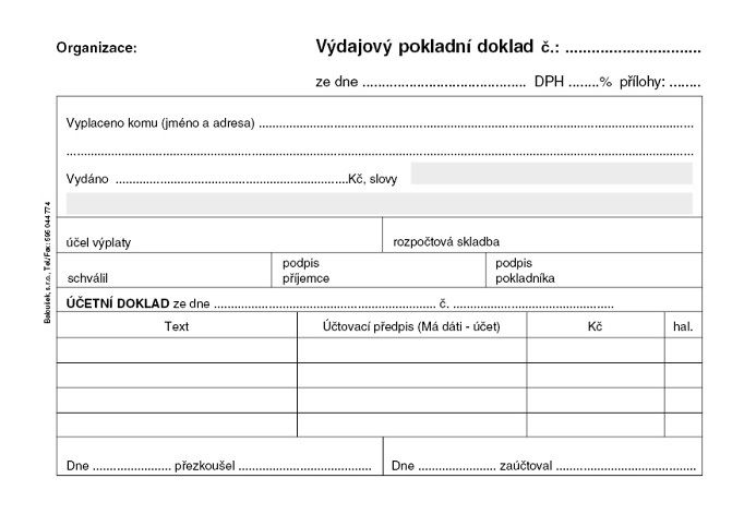 Výdajový pokladní doklad i pro podvojné účetnictví A6 / ET050 / Baloušek tisk