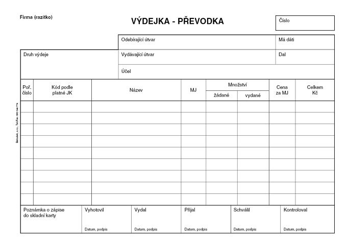 Výdejka - převodka A5 přímopropisující / PT230 / Baloušek tisk