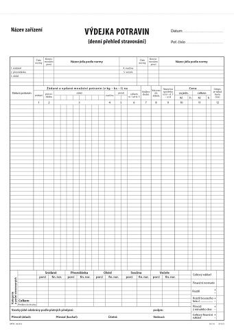 Výdejky potravin a denní přehled stravování, blok A3, 130 listů