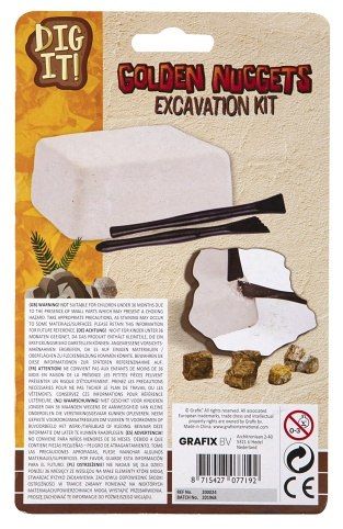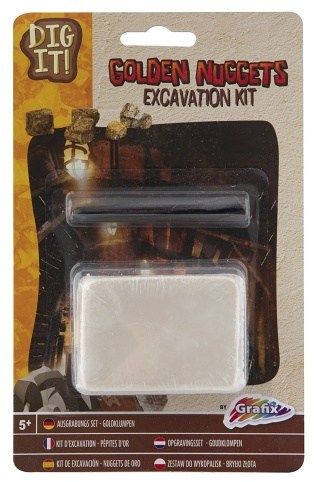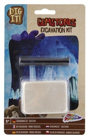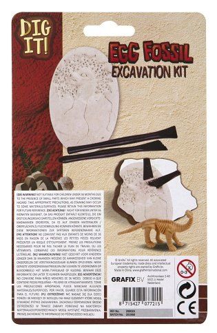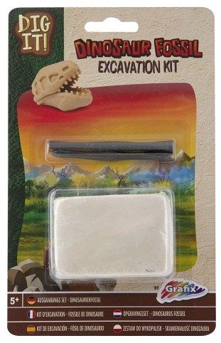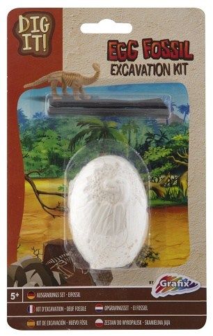 Vykopávky fosilíí – 4 různé druhy – můžes si vykopat zlatou nugetku, drahokam, fosilii dinosaura a nebo vajíčko s dinosaurem. Balení obsahuje fosilii a 2 nástroje pomocí, kterých můžeš fosilii vykopat.