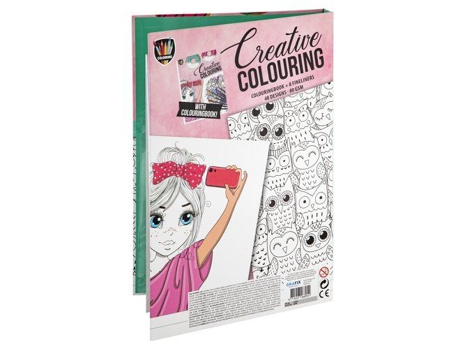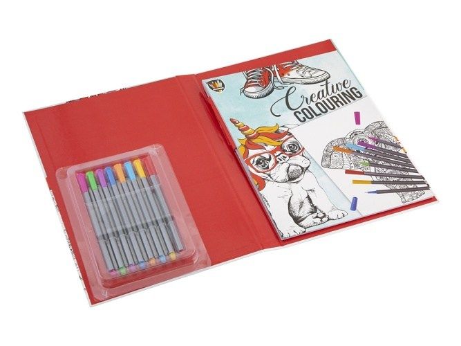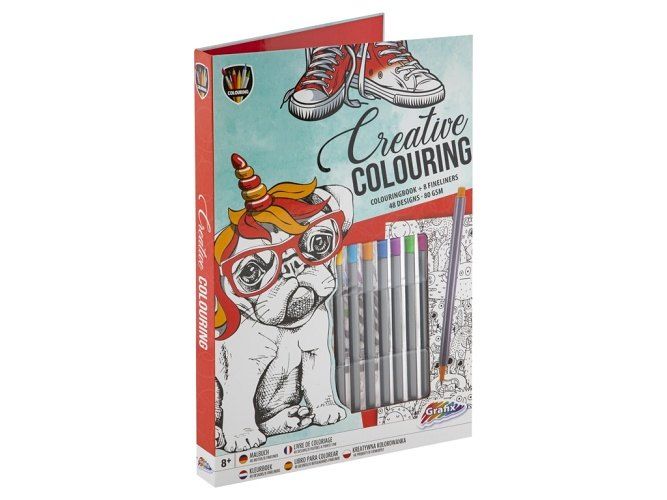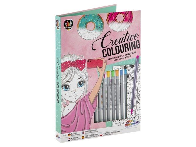 Vymalovánky kreativní. Balení obsdahuje 48 různých obrázků, 80 GSM a 8 ks vybarvovacích tužek.