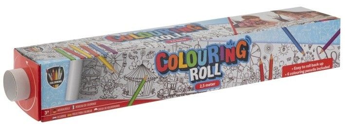 Vymalovávací role s předtištěnými obrázky – délka role 2,5m. Součástí balení 6 pastelek. Velmi snadné rolování tam i zpět.