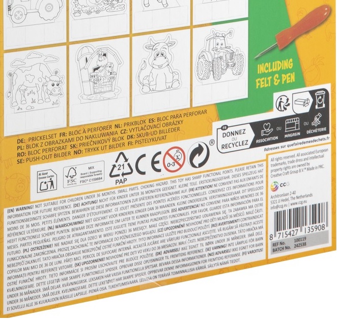 Kreativní set vypichovací obrázky obsahuje 12 listů obrázků k perforaci + vypichovací pero s hrotem + podložku. Obrázek si nejdříve vybarvi podle předlohy na obalu nebo své vlastní představivosti. Poté pomocí přiloženého pera list perforujeme na určených místech (po obvodu), aby vznikl krásný obrázek. 15x20 cm