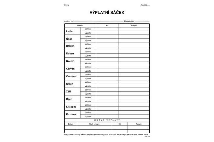- PAPÍRNICTVÍ / TISKOPISY / MZDOVÉ A PERSONÁLNÍ / Výplatní sáčky