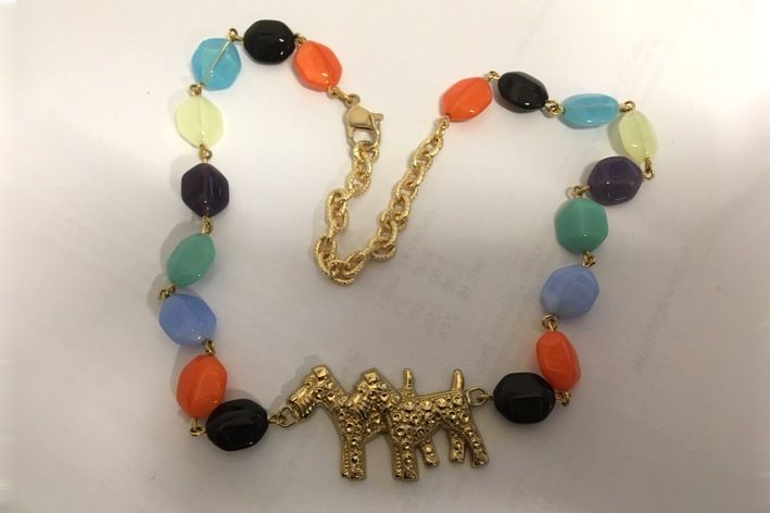 Náhrdelník s přívěškem dvou pejsků. Celková délka cca 35cm. Lze upravit zapnutím na blížší očku (zkrátit délku)