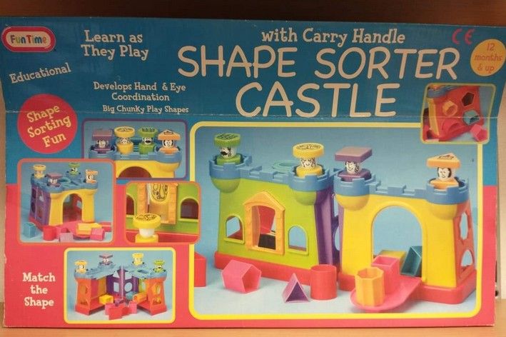 Vkládačka hrad – doporučený věk od 12 měsíců, spojuje hru s učením, rozvíjí koordinaci rukou a očí, velké tvary k uchopení.