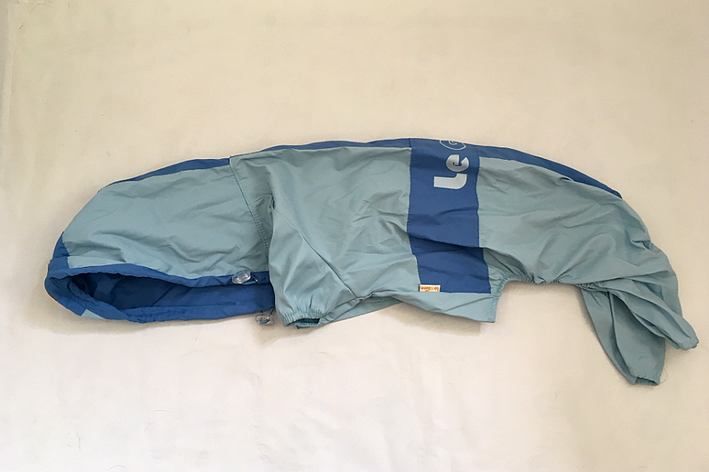 Délka na hřbetu (bez kapuce): 38cm. Spúodní díl (na suchý zip): 22cm. Návleky na přední tlapky: cca 8cm, zadní tlapky cca 10cm.