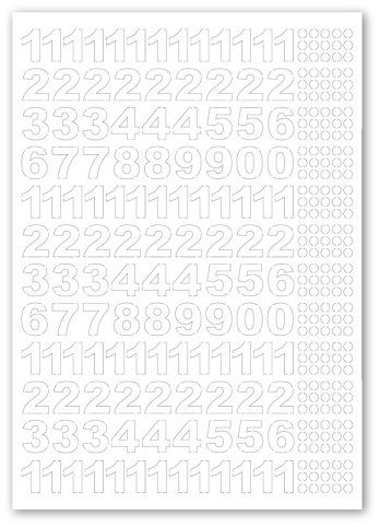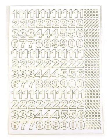 v balení 1ks archu, který obsahuje: 39x číslo 1, 2; 9x číslo 3, 4; 6x číslo 5, 6,7, 8, 9, 0; 180x tečka