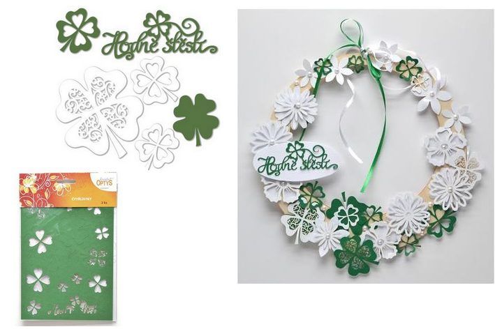 v balení 2 ks archu, který obsahuje 13 ks čtyřlístků různých velikostí, 1 ks nápis Hodně štěstí