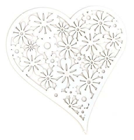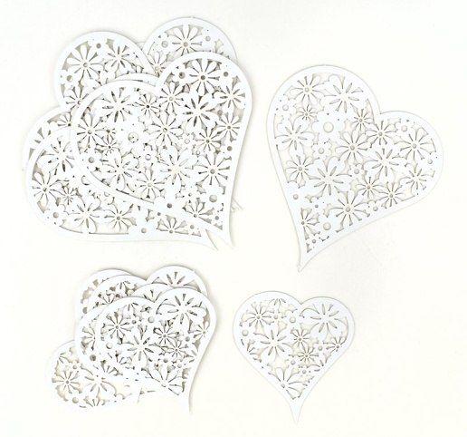 Výřez květinové srdce bílé, 12 ks, dvě velikosti 4,5x5cm, 6,5x7cm