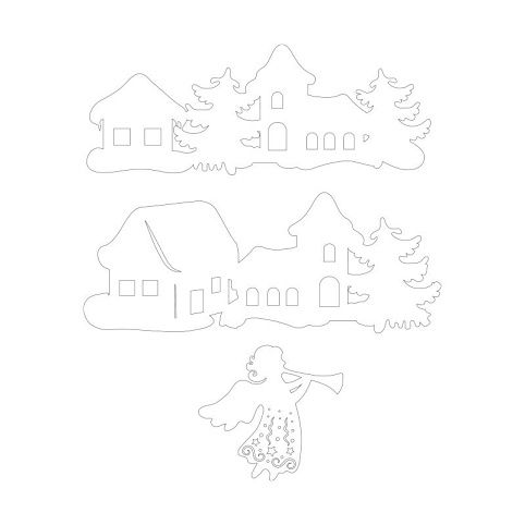 Výřez sada domečky + anděl, 4 + 2 ks