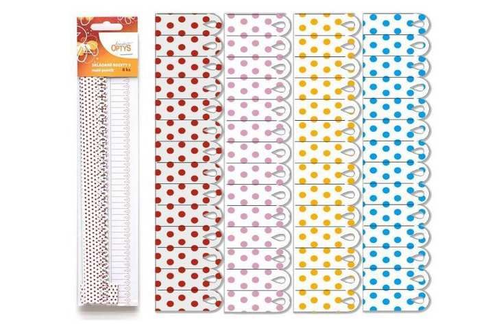 materiál: karton 160 gramů s puntíkem růžovým, žlutým, modrým a červeným