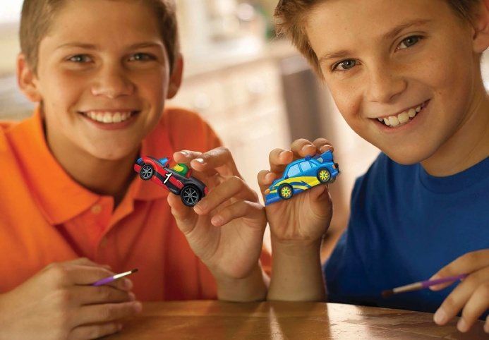 Vytvoř si své vlastní magnety nebo špendlíky pomocí formy, sádrového prášku, barev a štětce, které jsou součástí sady.