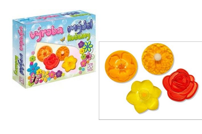 S touto sadou si vytvoříte opravdová mýdla vhodná na mytí nebo jako ozdobu do koupelny. Vytvořte si originální dárky pro kamarádky, maminky nebo babičky. Sada obsahuje kromě mýdlového základu také barviva, třpytky, formičky s motiven květin a nádoby pro přípravu mýdel.