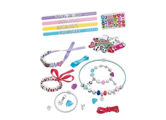 Různé styly náramků. Pojďme spolu vytvořit malou originální dekoraci. Vytvoř si vlastní personalizované šperky. Navrhni si vlastní náramky přátelství. 1. Otevři sponku na náramku. 2. Navlečte své oblíbené doplňky. 3. Provleč šňůrku přes ozdobu.