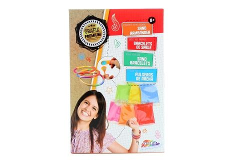 Kreativní sada pomocí které si vyrobíte krásné barevné pískové náramky. Obsahuje 12 sáčku s barevným pískem, násypku, lžičku a 6 gumových náramků pro tvoření. Rozměry balení cca 26 x 17 x 4 cm. Věk 8+