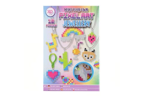 Sada pro výrobu šperků obsahuje 10 plastových forem, 1 arch s třpytivými samolepkami, 13 sáčků s ozdobami různých velikostí a barev, 1 plastovou karabinku, 20 spojovacích kroužků, 3 malé karabinky a 3 řetízky, Materiál plast+kov. Baleno v krabici. Rozměry balení cca 17,5x26x4 cm. Věk 6+