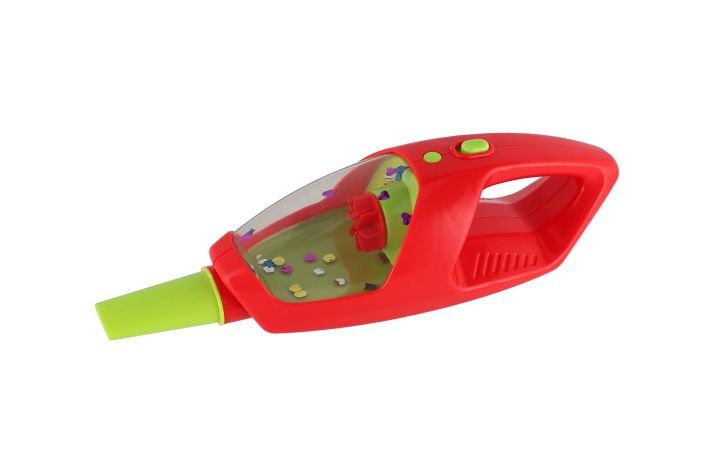 Děti si mohou hrát na vysávání pokojíčku, jako kdyby to byl opravdový vysavač. Vysavač vydává zvukové a světelné efekty, v průhledném válci se během vysávání víří barevné papírky.