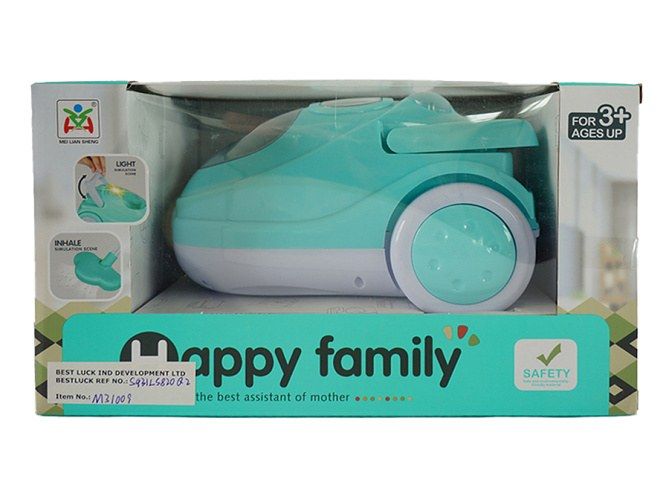 Vysavač v moderní barve, který svítí a má sací simulaci. Velikost 28x17x16 cm.
