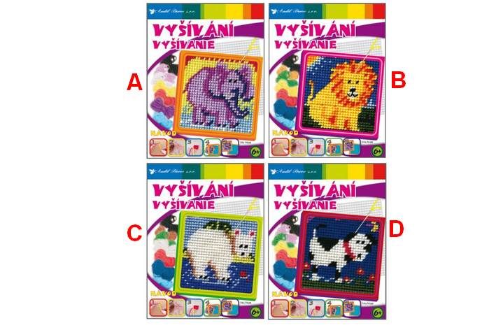 Balení obsahuje: plastovou vyšívací mřížku, papírový rámeček, jehlu a barevné příze.