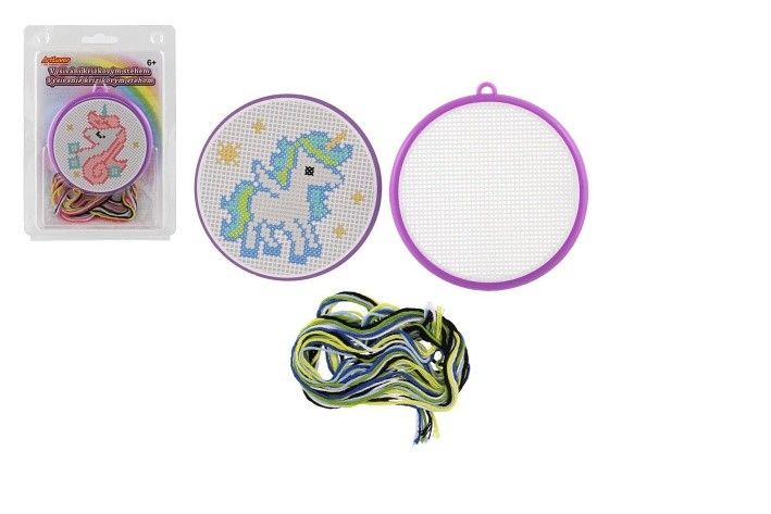 Vyšívání křížkovým stehem jednorožec vyšívací rámeček 1 předloha 6 bavlnek v blistru