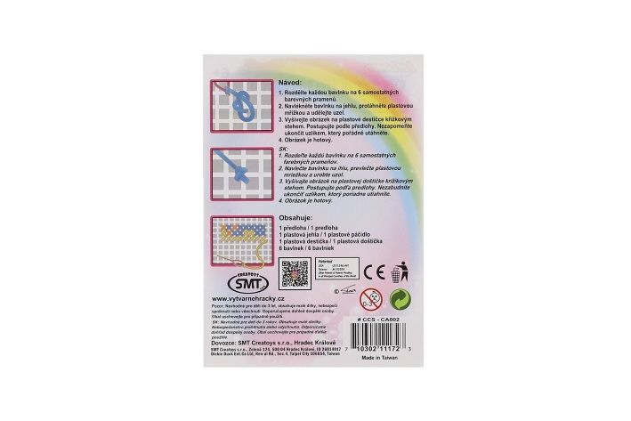 Vysívejte obrázek dle předlohy křížkovým stehem. Sada obsahuje plastovou destičku, papírovou předlohu, jehlu a 6 bavlnek.
