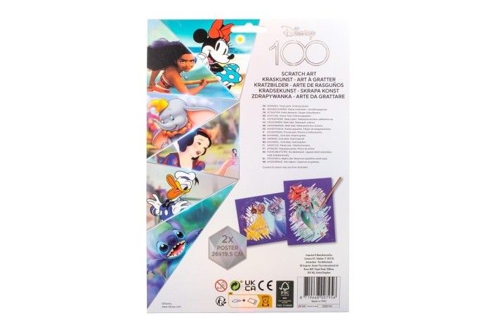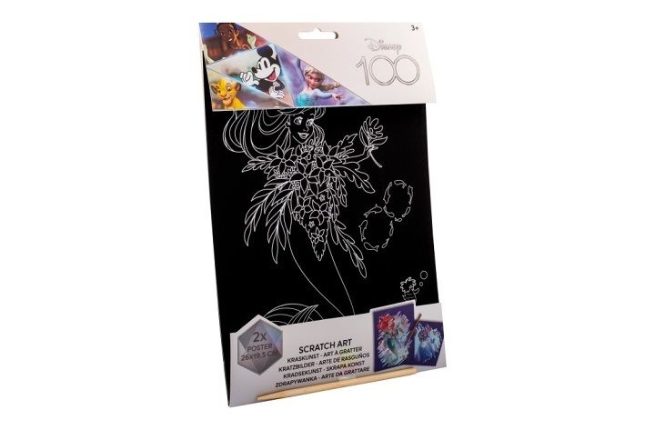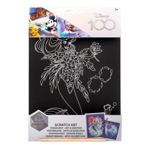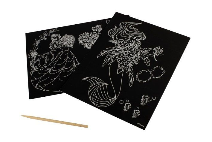Vyškrabávací obrázky Disney100 Princezny – balení obsahuje dva vyškrabávací obrázky o rozměrech 26×19,5 cm + vyškrabávátko.