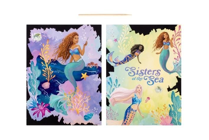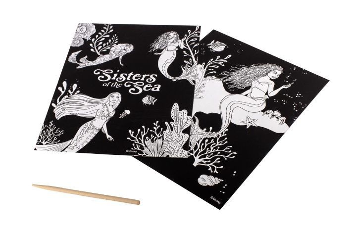 Vyškrabávací obrázky Malá mořská víla – balení obsahuje dva vyškrabávací obrázky o rozměrech 26×19,5 cm + vyškrabávátko.