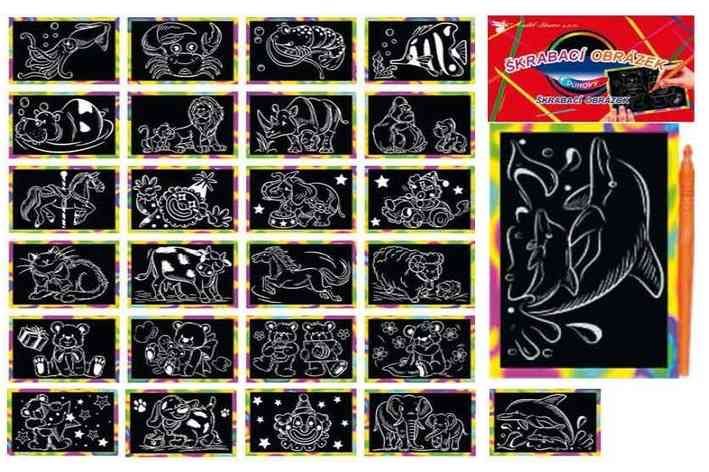 Vyškrabávací obrázky s duhovým podkladem 15x10cm