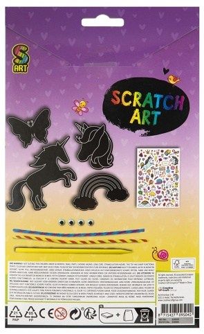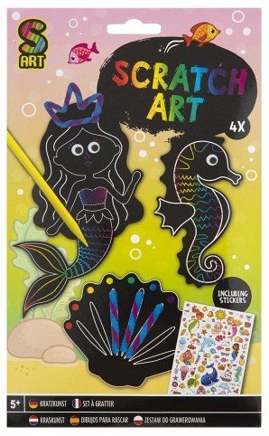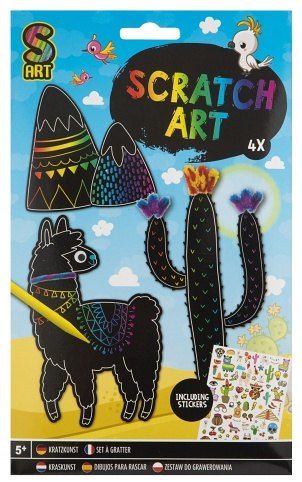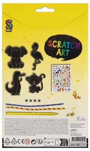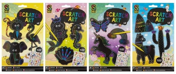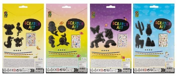 Vyškrabávací obrázky se samolepkami – zvířátka – balení obsahuje 4 obrázky zvířátek + samolepky. Tři různé druhy.