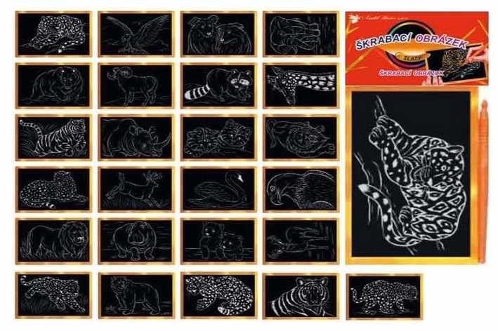 Vyškrabávací obrázek s různými motivy! Balení obsahuje předtištěný obrázek 15 x 10 cm a rydlo. NÁVOD: Odstraňte krycí fólii. Přiloženým rydlem seškrábejte předtištěný obrázek. MIX motivů, cena za 1 kus.