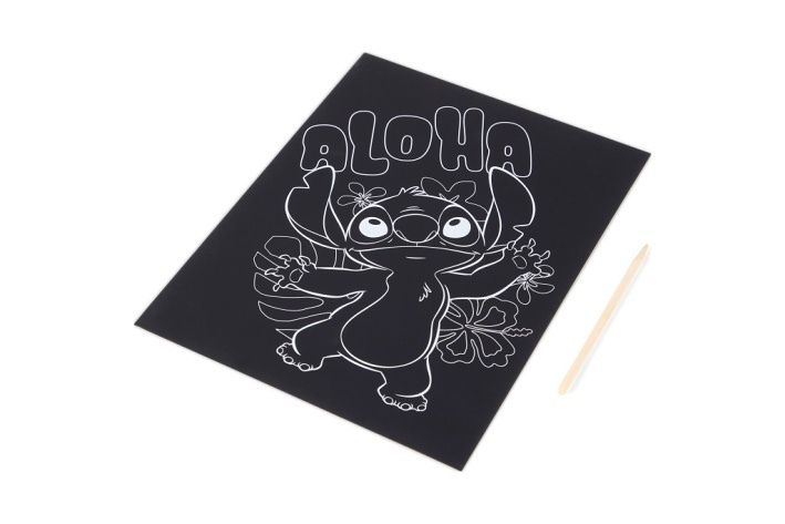 Kreativní zábava s oblíbenou postavičkou Stitch! Tato sada obsahuje 2 vyškrabávací obrázky, na kterých děti pomocí přiloženého dřívka odhalují barevné motivy ukryté pod černou vrstvou. Ideální aktivita pro rozvoj jemné motoriky, trpělivosti a fantazie. Skvělý dárek pro malé výtvarníky i fanoušky filmu Lilo & Stitch. Velikost obrázku 29×15 cm.
