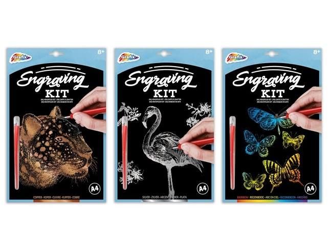 Vyškrabávací sada – 3 různé obrázky A4 – balení obsahujeobrázek + rydlo.