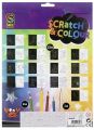 Vyškrabávací/vymalovávací obrázky – sada obsahuje 15 vymalovávacích obrázků, 15 vyškrabávacích obrázků, škrabátko a 4 pastelky.