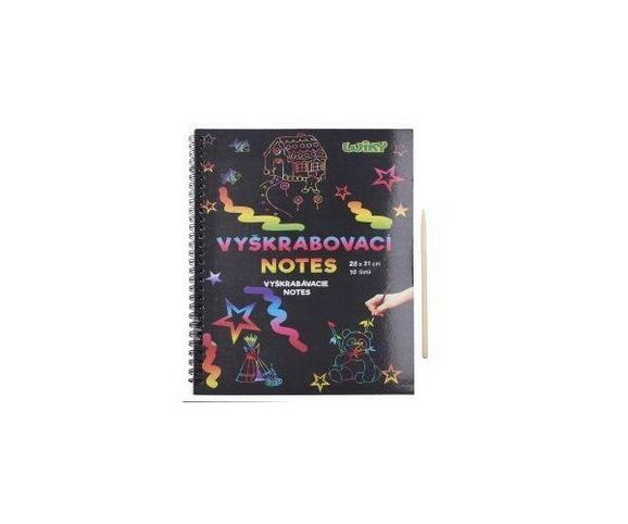 Kreativně se vydovádějte na vyškrabovacím notesu, který má rozměry 19x26 cm. Na jednotlivých listech, můžete pomocí vyškrabovacího pera vytvářet různé pestrobarevné obrázky.