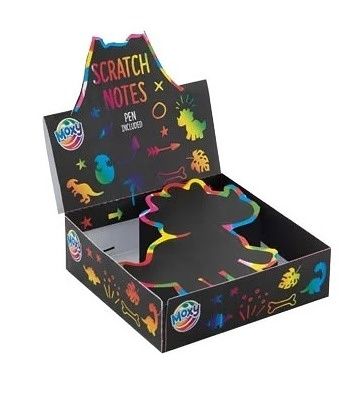 Vyškrabovací notes/papíry – Baleno v papírové krabičce, ve které najdeš 75 listů k vyškrabání a vyškrabávací pero, 9x9x4 cm