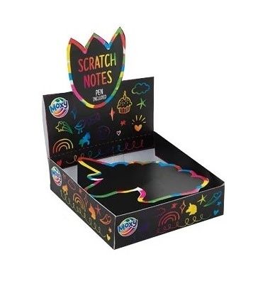 Vyškrabovací notes/papíry – Baleno v papírové krabičce, ve které najdeš 75 listů k vyškrabání a vyškrabávací pero, 9x9x4 cm