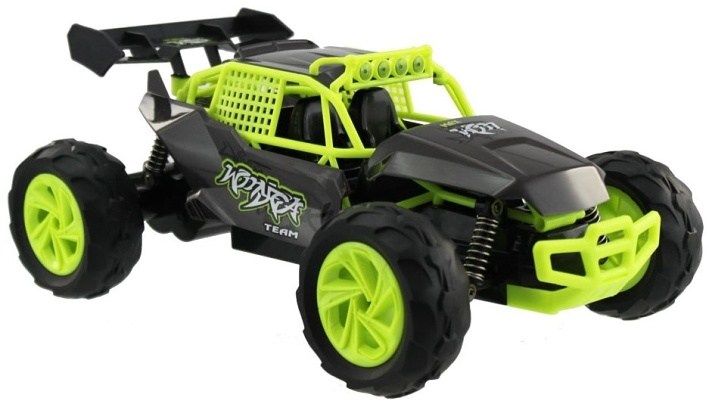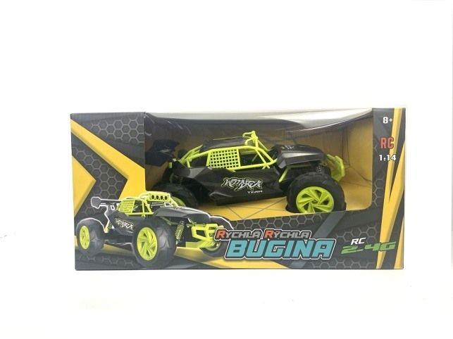 Skvěle ovladatelná RC Bugina do terénu. Maximální rychlost 25 km/h. Frekvence 2,4GHz, frekvenční pásmo 2405–2475MHZ, maximální radiofrekvenční výkon 0 DB, dosah dálkového ovládání 30–40m. Absorbční tlumiče na obou nápravách, realistický vzhled. Profesionální závodní podvozek a vysokorychlostní motor. Funkce: jízda dopředu jízda dozadu, zatáčení doleva, zatáčení doprava, zrychlení, brzdění, simulace plně proporcionální pohon kol. Na baterie: 1x 6V (je součástí balení), 1x 9V (je součástí balení)