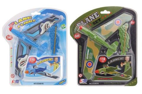 Vystřelovací letadlo, které po vystřelení plachtí vzduchem. Součástí balení je i vystřelovací zařízení. Velikost letadla cca 24,5 x 14 cm. Rozměry balení cca 21,5 x 25,5 x 4 cm. Věk 5+