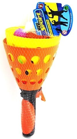 Zábava na doma i ven. Jeden hráč stisknutím páčky vystřelí míček a druhý se ho snaží chytit do košíku.