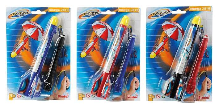 Vystřelovací raketa s padákem. Vystřelovák na principu praku. 3 barevná provedení.