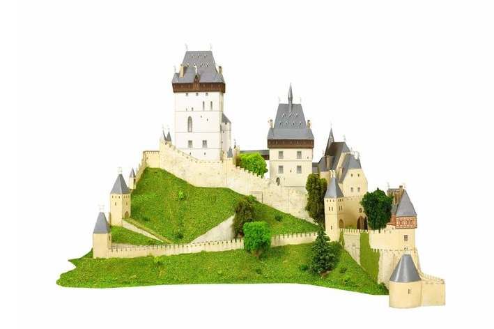 Gotický hrad patří mezi papírové modely vyhotovené v měřítku 1:350. Tento rozsáhlejší model vystřihovánky naší firmy je konstruován a tištěn včetně sklaního podloží, které lze vylepšit pomocí travního posypu a několika umělých stromků, takže se dosáhne velmi realistického vzhledu modelu.