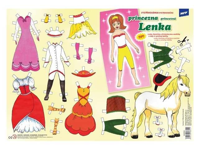 Vystřihovánky převážně pro holčičky s panenkou kterou si oblečete podle vašeho vkusu. Vystřihovánky panenky Lenky jsou na 2 listech formátu A4. Najdete zde holčičku Lenku a spoutu různých šatů, oblečení a účesů.