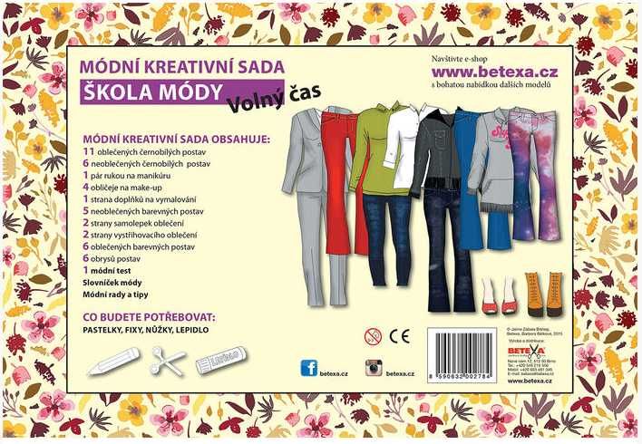Módní kreativní sada pro všechny mladé slečny. Sada obsahuje 11 oblečených černobílých postav, 6 neoblečených černobílých postav, 1 pár rukou na manikůru, 4 obličeje na make-up, 1 stranu doplňků na vymalování, 5 neoblečených barevných postav, 2 strany samolepek oblečení, 2 strany vystřihovacího oblečení, 6 oblečených barevných postav, 6 obrysů postav, modní test, slovníček módy a módní rady a tipy.