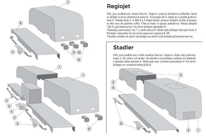 Jednoduché vystřihovánky regionálních vlaků. Vystřihovánky jsou vhodné pro začínající modeláře.