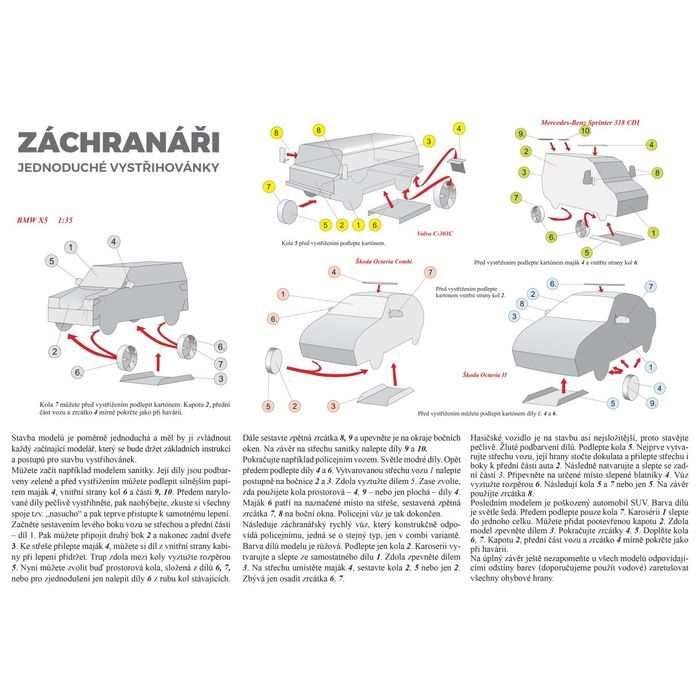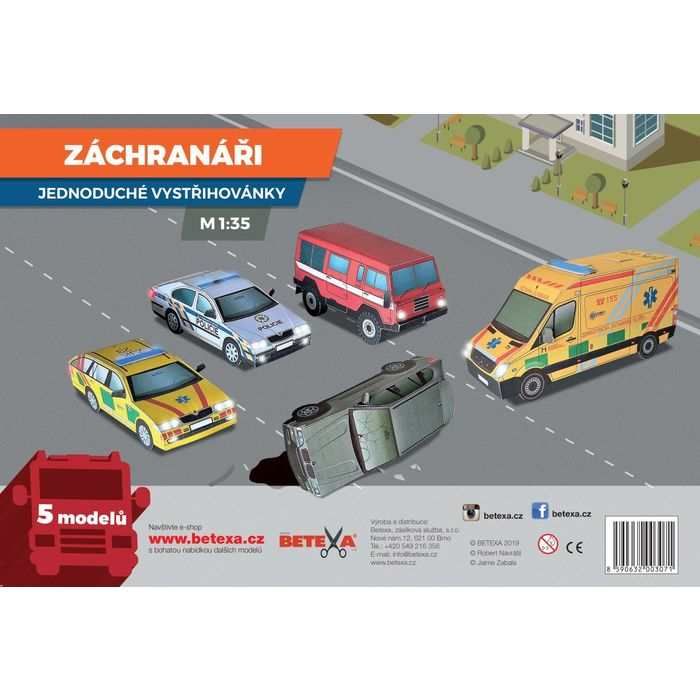 Soubor jednoduchých vystřihovánek záchranářských vozů. Sešit obsahuje 5 jednoduchých modelů pro začátečníky.